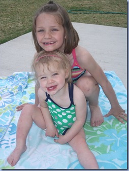 got out the sprinkler on our one 80 degree day a few weeks ago. Faith joined her.